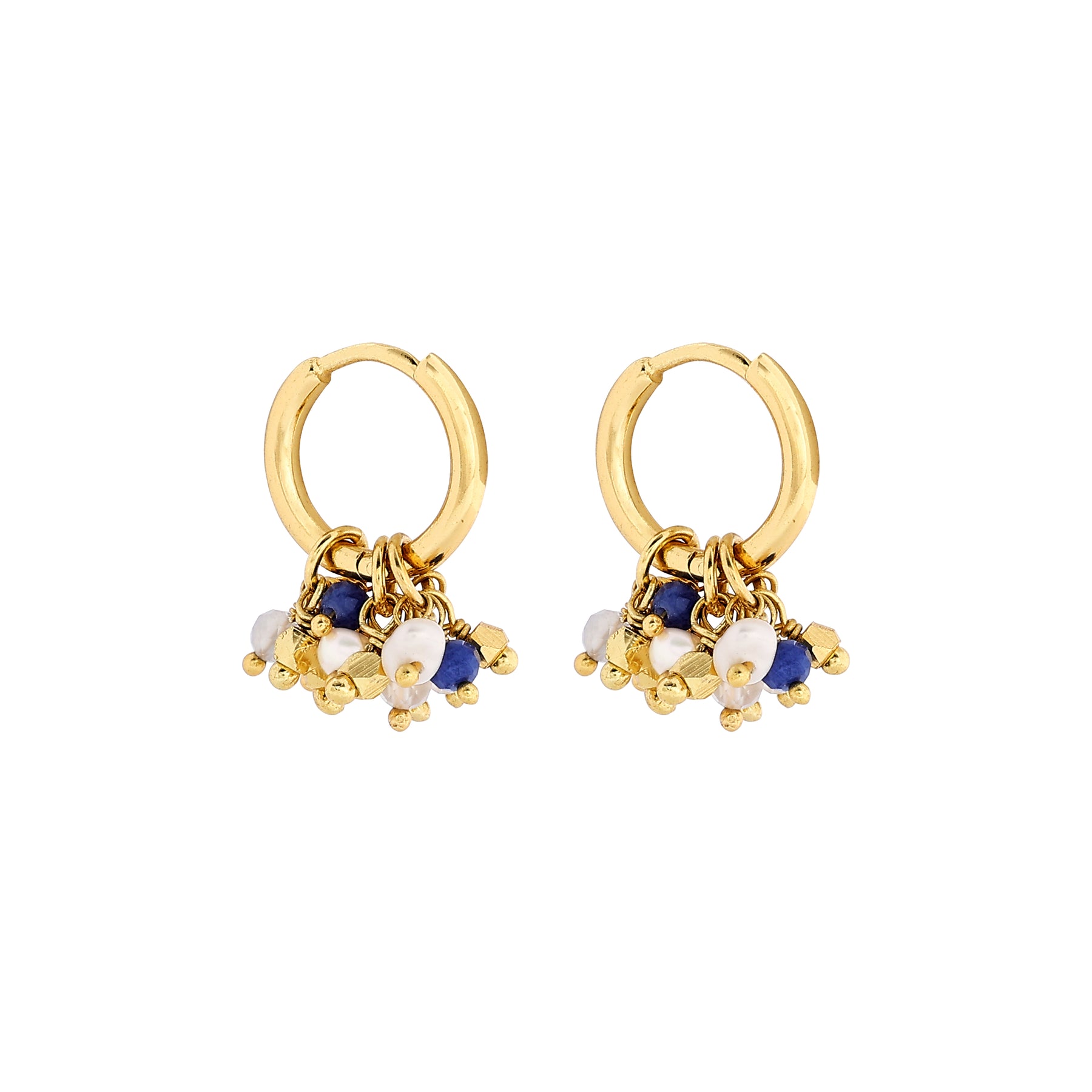 Näissä lumoavissa rengaskorvakoruissa yhdistyvät ylellinen muotoilu ja herkät yksityiskohdat. 18 karaatin kullalla pinnoitetut renkaat luovat ajattoman ja elegantin pohjan, jota koristavat rauhallisen sininen akaatti.